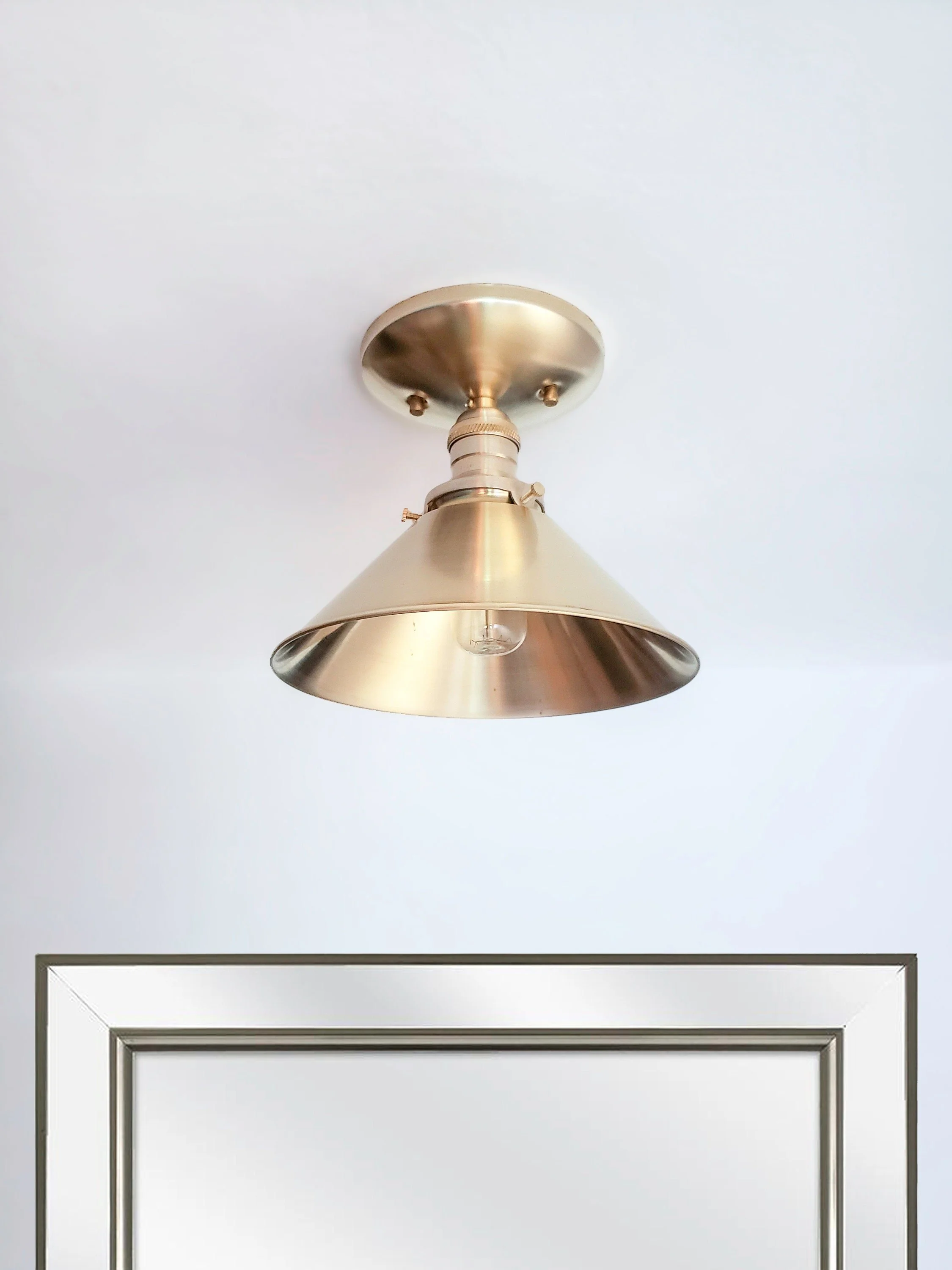 Semi Flush Brushed Brass Cone Ceiling Light Contemporary Farmhouse Mid Century Modern Industrial Loft Ceiling Lighting Gold Lamp Old School