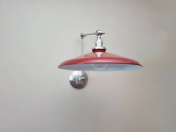 This wall light is perfect whether used by the bed, over the sink, or above bookcases or kitchen shelves, this highest-quality industrial shade wall lamp will direct the light just where you want it with a tilting shade, double-jointed swinging arms and a variable extension.